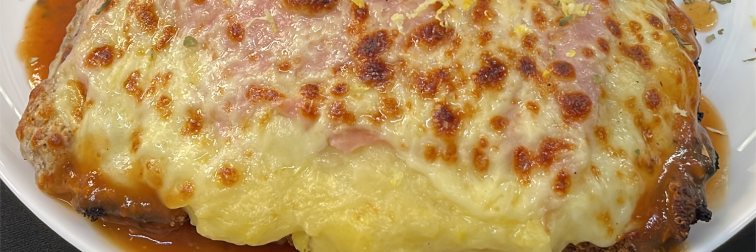 Experimente nossa maravilhosa parmegiana de frango (Frango empanado, purê de batatas, presunto mussarela gratinada e mo... Ver completo