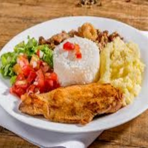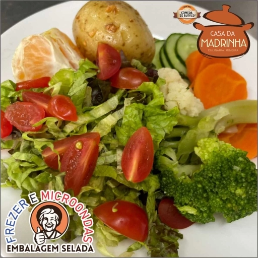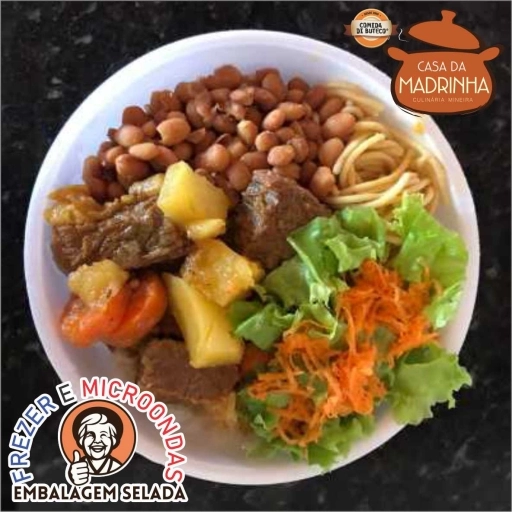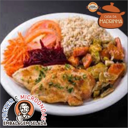 Arroz, feijão, macarrão do dia, legumes do dia e proteina a escolha